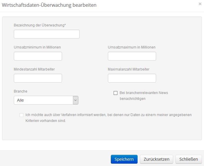 Verpassen Sie nie mehr wichtige Informationen zu einem Insolvenzverfahren: Mit unserem Wirtschaftsdaten-Monitor werden Sie automatisch über interessante Verfahren benachrichtigt.